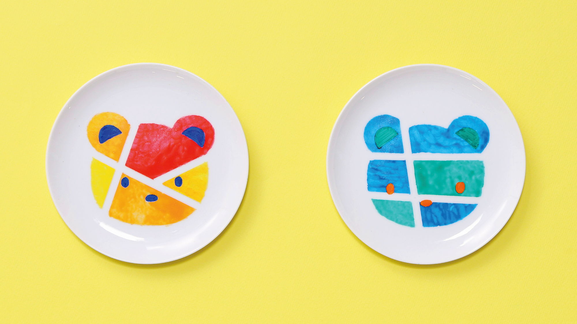 カラフルなクマちゃんのお顔が描かれたオリジナルのお皿をつくろう!