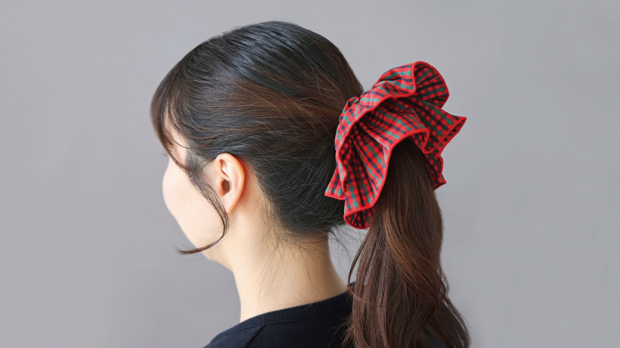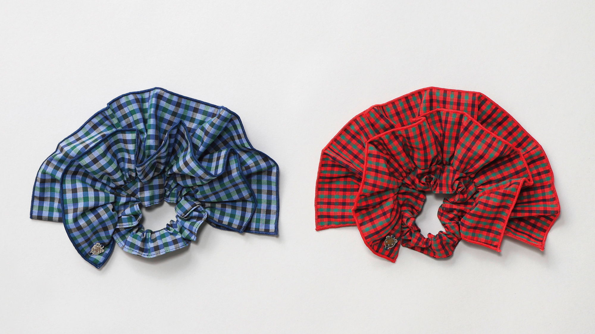 ファミリアチェックを贅沢に使用したシュシュ。