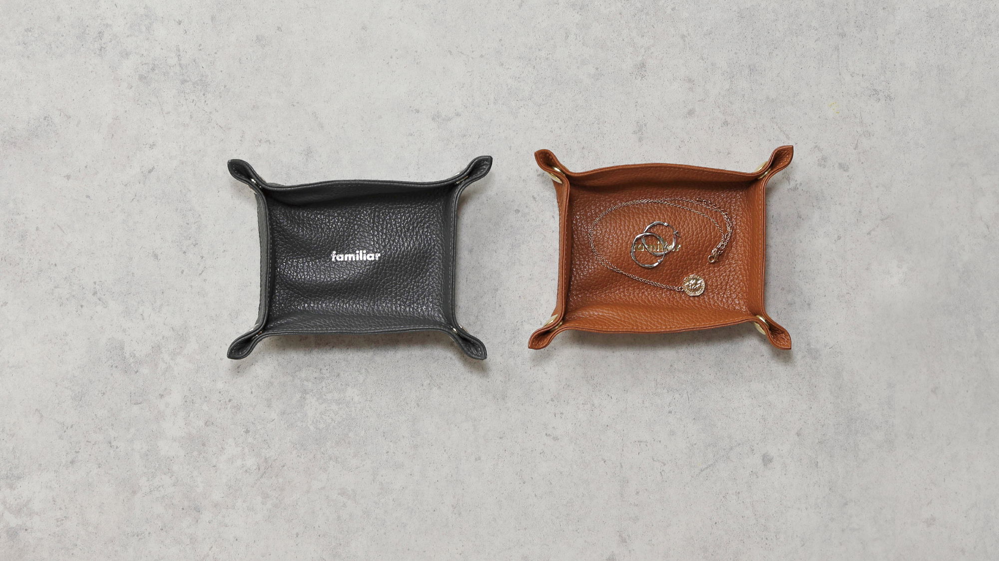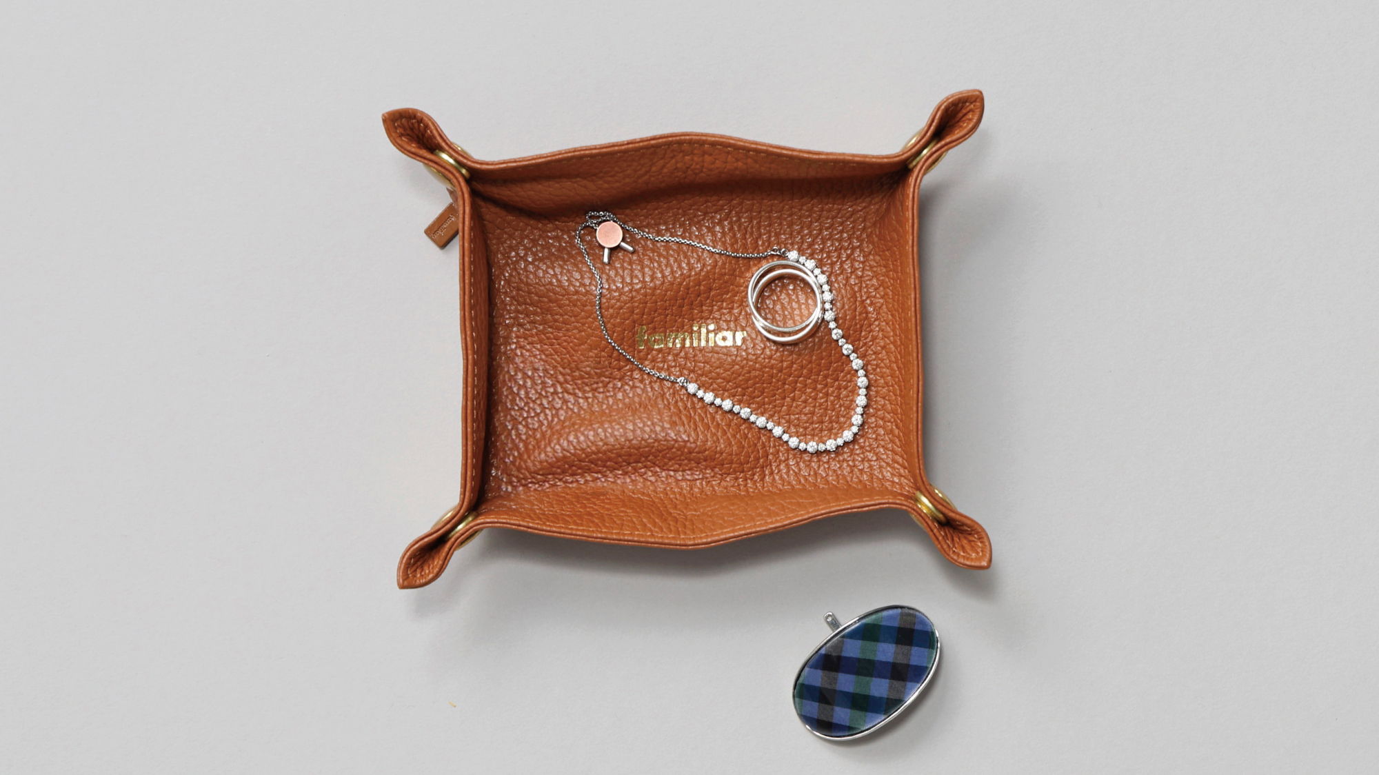 レザーを使用したアクセサリートレイ。
