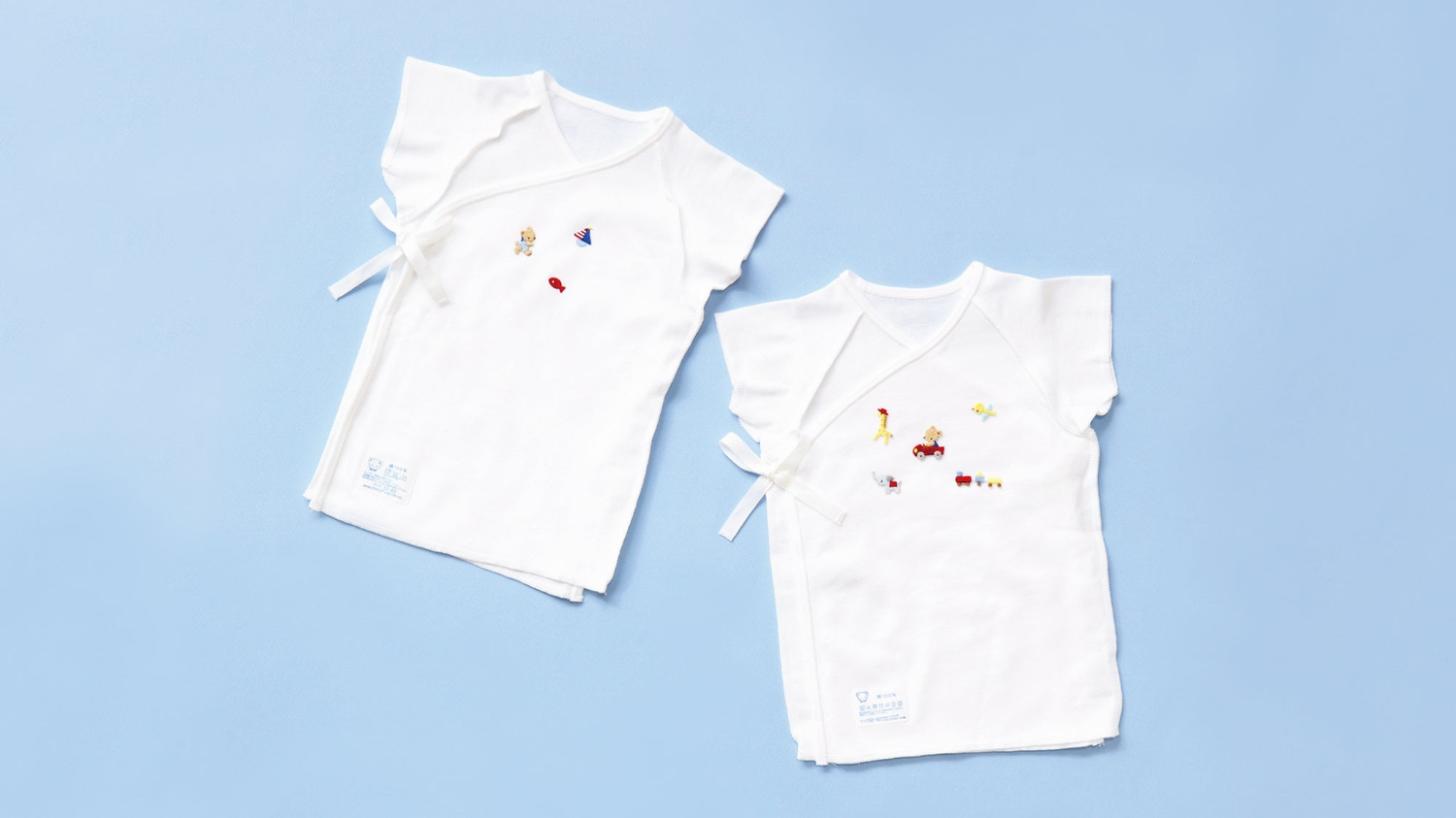 打合せ半袖肌着は、季節問わず、一年を通じて一番下に着る基本の肌着で、出産準備に3~5枚をおすすめしています。