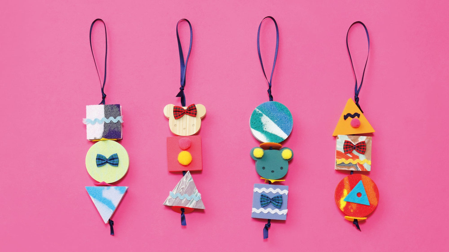 ものづくりの過程で生まれる端材から、クマちゃんや〇△□のパーツを切り出しました。自由に組み合わせて、自分だけのオーナメントをつくろう。