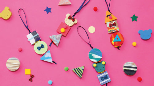 ものづくりの過程で生まれる端材から、クマちゃんや〇△□のパーツを切り出しました。自由に組み合わせて、自分だけのオーナメントをつくろう。