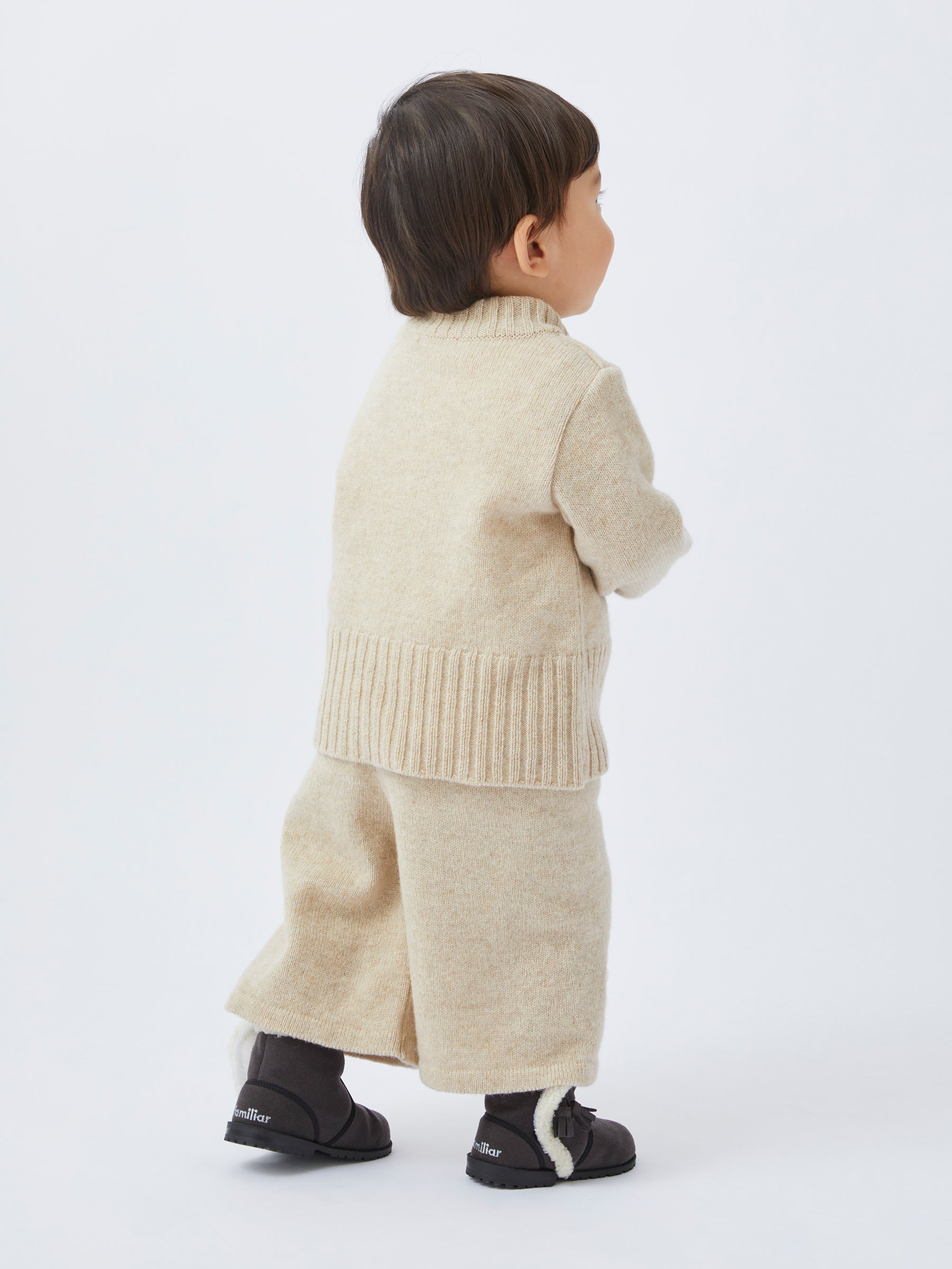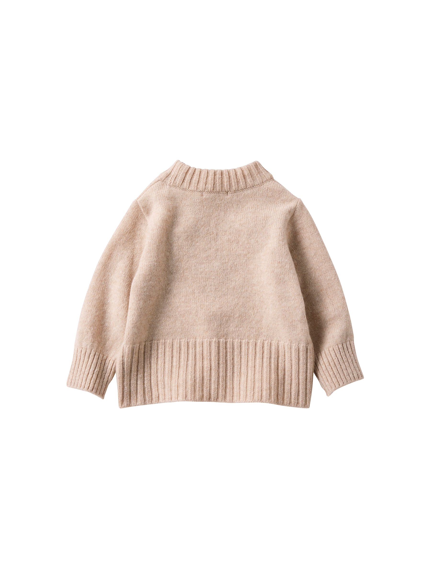 軽くスポンジッシュな膨らみがあり保温性に優れた糸を使用し、綺麗なメランジベージュカラーで上品な印象に仕立てました。